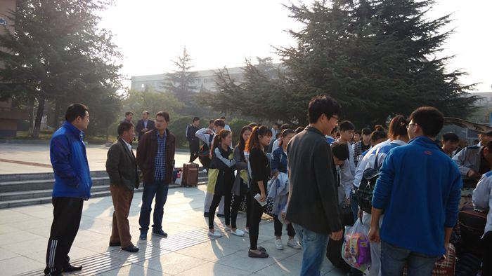 电气系信敬科老师负责带队护送员工们前往企业,并做好与企业的交接及就业实习的管理工作。