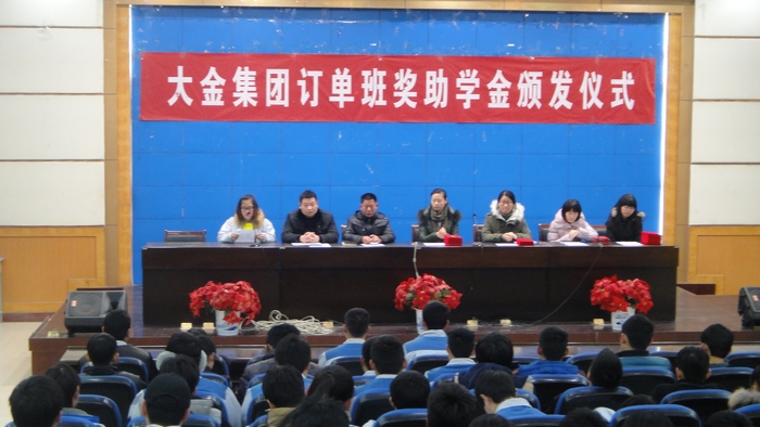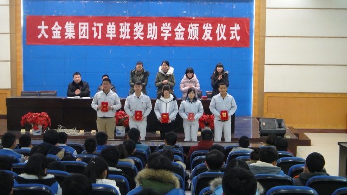 12月18日下午4:30,公司在数控系106室隆重召开2014年大金(中国)奖学金发放仪式。电气系行政主任姜玉柱、人才招聘处乔骋老师、大金(中国)各个企业的代表出席此次表彰大会。大金委培班级的员工参加此次仪式。 姜主任对企业代表们在百忙中到公司为员工们颁发奖学金表示衷心地感谢,鼓励员工们努力学习、不辜负企业对大家的期望。企业代表对获得奖学金的员工表示祝贺,希望员工们坚定目标、好好学习知识和技能,为顺利进入企业做好充分的心理和能力准备。之后,12高职机电2班的贾园园同学代表获奖员工发言。表达了对企业的感谢之情,汇报了自己在校的各项表现,并表示一定会珍惜学习机会,掌握专业知识技能,毕业后成为企业需要的高技能人才。 大金企业的代表宣读《大金(中国)奖学金表彰决定》,主席台上的领导亲自为获奖员工颁发大金奖学金。 最后,乔骋老师作总结发言。他指出,此次奖学金发放仪式,让我们看到了员工们坚持进取、不断拼搏的学习劲头、看到了企业的优秀文化精神及对员工的关爱之情。他期望员工们要珍惜难得的学习机会,坚定人生目标,努力奋斗,发扬不怕苦、不怕累、勇攀技能高峰的精神,为学校和企业的紧密合作搭建起和谐的桥梁。 文/图 王劝