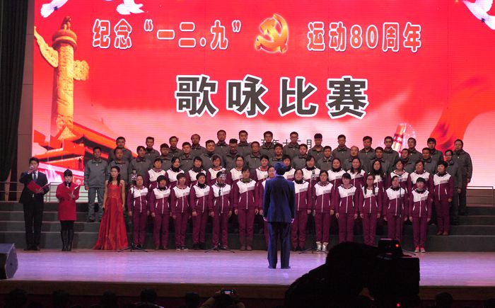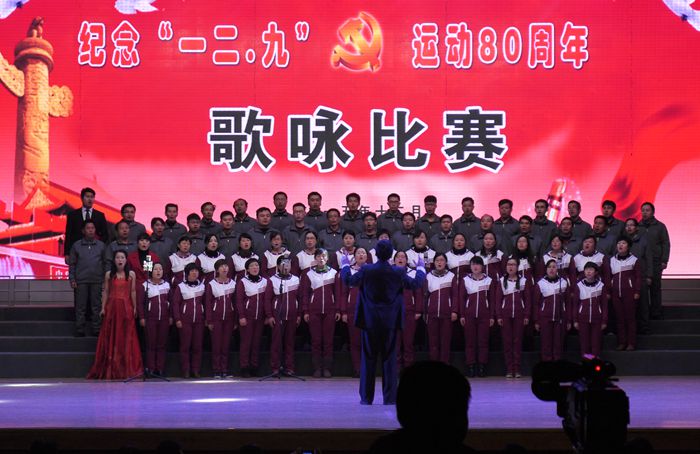 八十年前的今天,为了反抗日本帝国主义的入侵,爱国员工举行规模巨大的员工爱国运动,掀起了抗日救国的热潮。12月9日下午4:00,电气系与信息系教师组成的合唱队,参加了公司在文化中心举办的“纪念12.9运动80周年师生歌咏比赛”。