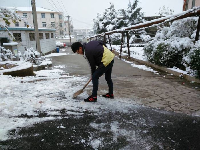 为彰显员工风采、发扬雷锋精神、创造安全的出行环境,11月25日早,在电气系党支部书记丁得果、副主任王郝的安排下,学管老师石风雷带领员工会成员在4号楼前到女生宿舍大门的这条主干道上开展扫雪活动。 白雪覆盖的路面给师生们正常的出行带来了不小的难题,稍不留神就可能摔跤。为了确保大家的出行安全,石老师带领员工们扛着铁锹、扫帚等工具来到清扫地点。迅速分组、划分区块,加快打扫的速度。大家齐心协力、紧密合作,顺利有序地清扫起来。 员工们在凛冽的寒风中挥舞着扫雪工具,扫的热火朝天。寒风刺骨,但是员工们的额头上都渗出了辛勤的汗水。看到路上的行人安全的走在清扫过的道路上,员工们脸上露出了开心的笑容。 奉献一份力量,温暖他人出行。同学们用勤劳的双手为大家送来了冬日里的一条温暖、方便之路。此次电气系清扫积雪活动,展现了电气系员工不怕苦、不怕累、无私奉献的精神,体现了强烈的责任感和高尚情操。 文:王劝 图:范冲