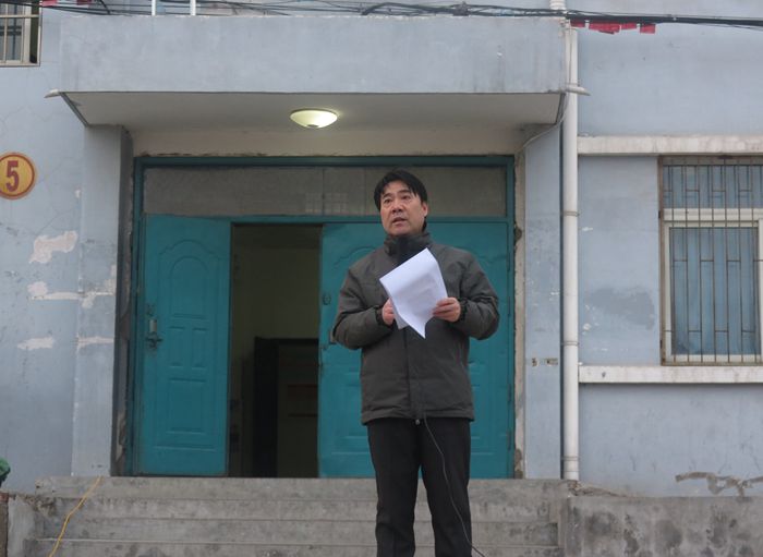 3月7日早6:30,电气系在5号楼前开展晨会教育。电气系党支部书记丁得果主持并讲话。