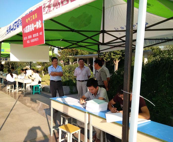 新生报到期间,校领导、学工处领导来到我系员工接待处,认真询问员工的报到情况,对我系的接待工作给予了肯定。经过一天紧张忙碌的接待,我系顺利完成了16级新生的接待工作。