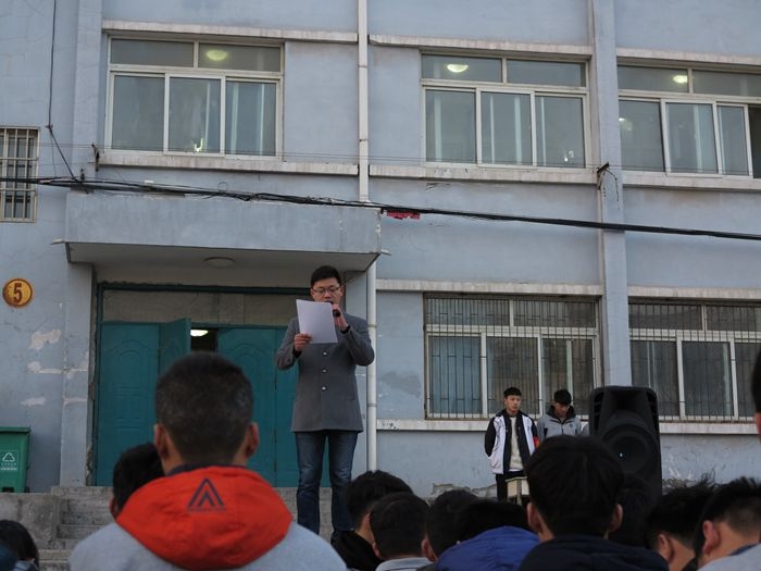 3月6日早,电气系在5号楼前开展晨会教育。电气系学管组长吕猛担任主讲。