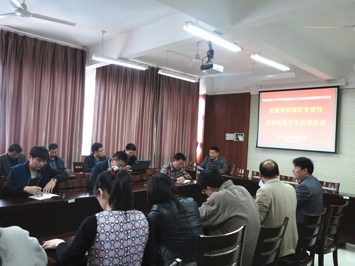 为贯彻落实2017学院思想政治工作会议精神,深化员工思想品德教育,4月14日下午,电气系在309室召开“挖掘学科课程育德性 全面开展员工品德教育”教师座谈会。电气系主任姜玉柱、党支部书记丁得果、副主任周忠艳、王郝出席会议。会议由副主任周忠艳主持。