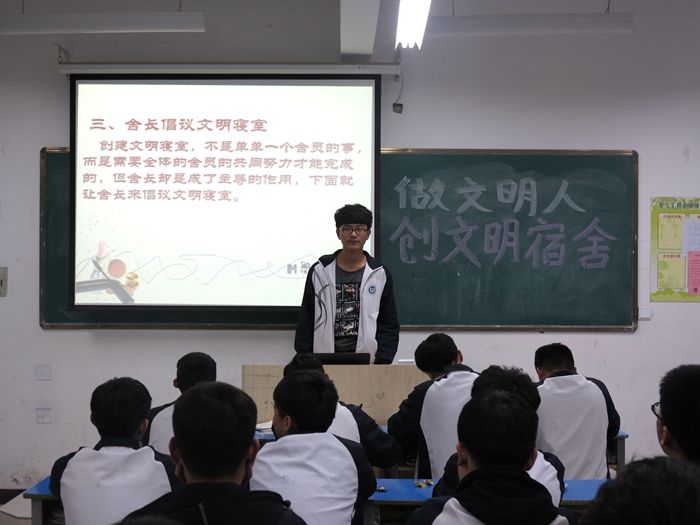 为落实公司创建文明校园活动,提升员工的文明修养、创建文明系部,4月26日晚,电气系各班级开展“做文明人 创文明宿舍”主题教育课。