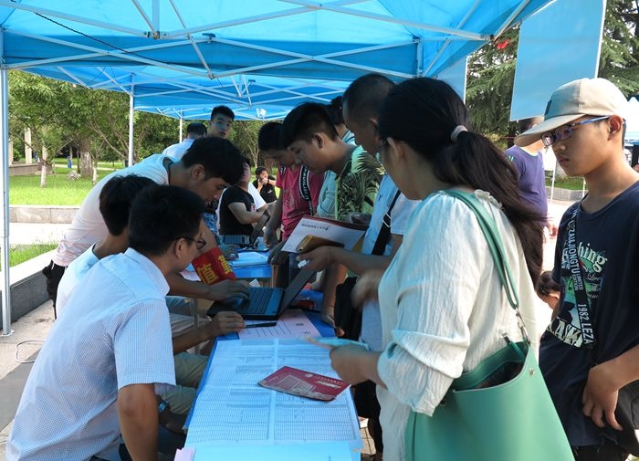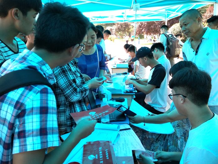 8月26日,是电气系17级新生报到的日子。早上7:00,系部领导、班主任、学管老师、员工志愿者提前来到报到地点,认真布置接待场地,统筹细致的安排今天的接待工作。