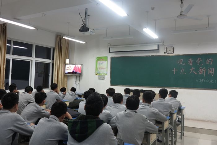 为迎接党的十九大胜利召开,进一步加强员工的理想信念教育,10月18日晚上7:00,电气系组织全系员工在各班级观看了十九大开幕会。