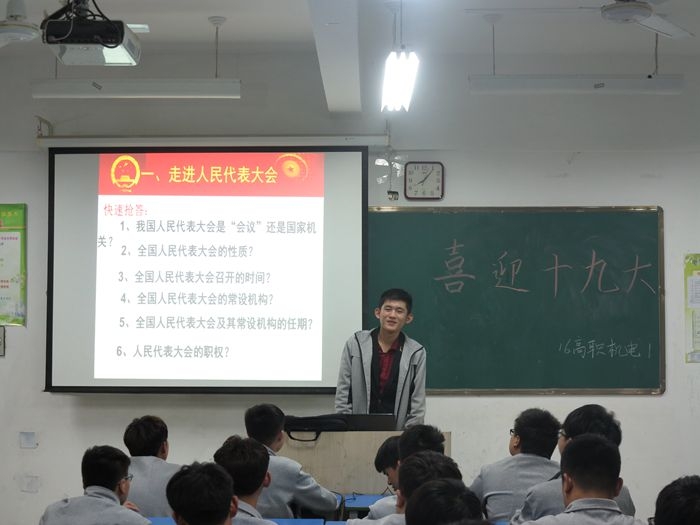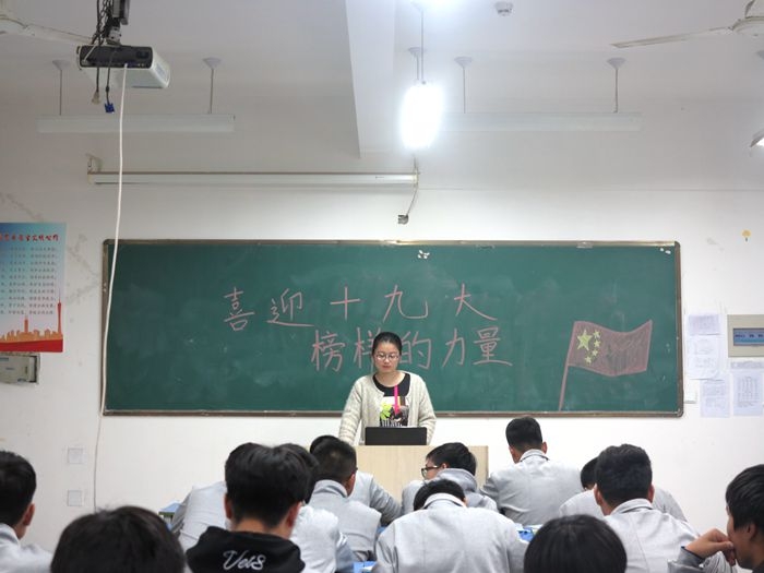 10月18日晚,电气系组织各班级开展“喜迎十九大 榜样的力量”主题班课。