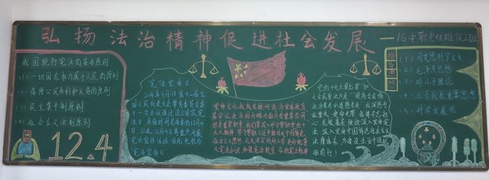 为进一步提高员工的法制意识,加强法制教育,正确引导员工树立正确的法制观念,电气系在各班级开展“弘扬法治精神 促进社会和谐”黑板报活动。