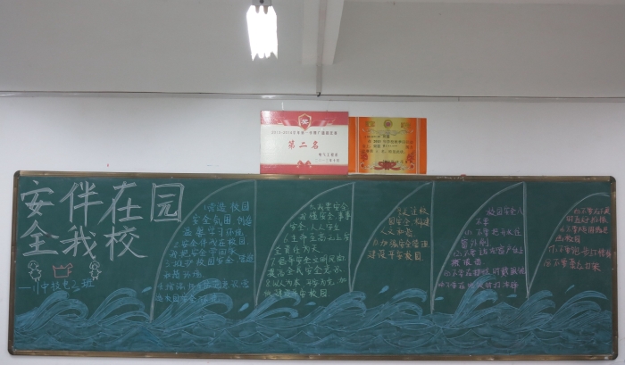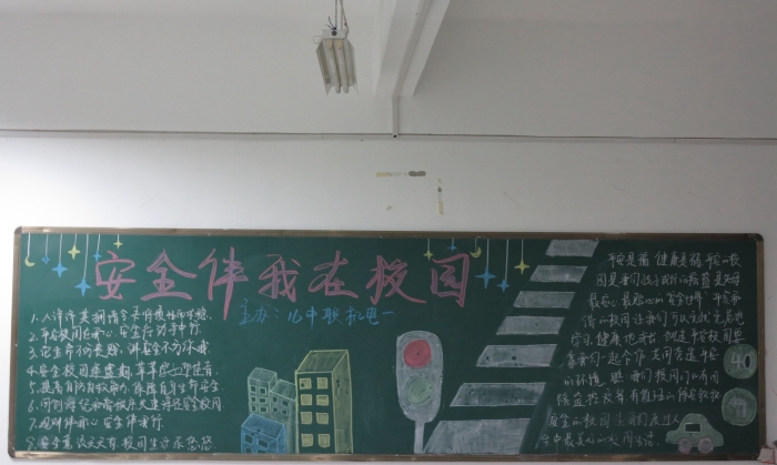 各班级的黑板报,设计新颖,主题突出,版面美观、文字工整、图文并茂。板报内容把安全作为主线,以安全法律法规、安全知识、安全责任、安全意义、安全事件、安全生产等为内容,贴合生活实际,吸引了员工们的关注和学习,提高了对安全校园创建工作的参与热情。