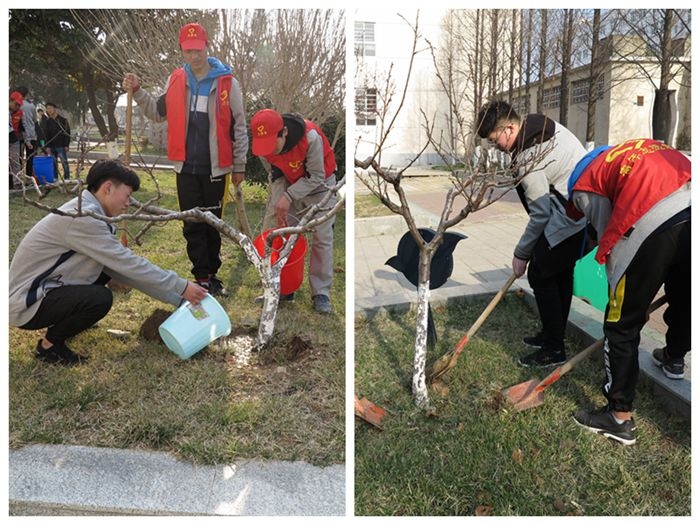 学管老师石风雷、张玉锋,给员工们分发劳动工具,分工开展志愿浇水活动。志愿者们拿着铁锹、水盆、水桶,松土、接水、运水、浇水,大家完全投入到植树节浇水活动中了。忙碌的劳动,让员工们额头上渗出了汗珠,但是看着露出嫩芽的树木,大家脸上都露出了会心的笑容。