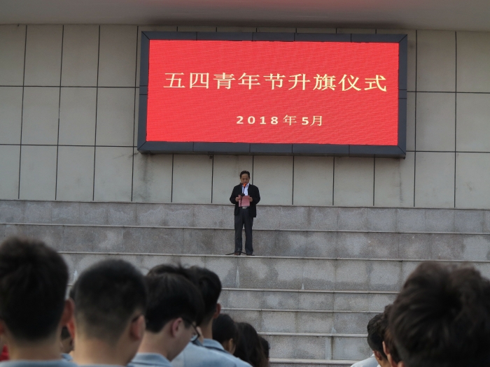 5月2日早,学院升旗仪式在东操场举行。公司宣传部部长于孝忠出席升旗仪式并讲话。学工处处长黄清站担任主持。