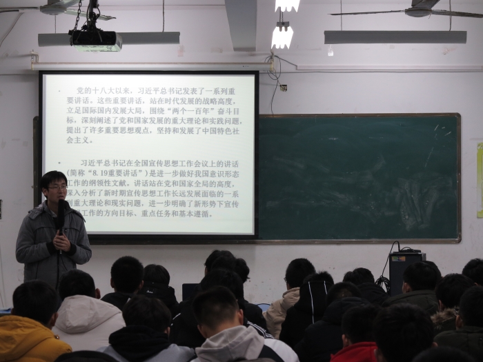 张老师紧扣十九大报告中习近平总书记关于牢牢掌握意识形态领导权的内容,深入浅出开展共青团员意识形态教育。