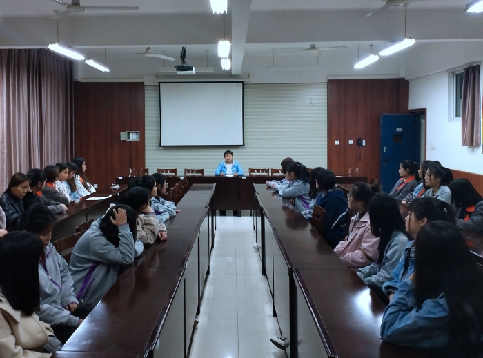 为促进女生身心健康发展,4月1日晚,电气系组织全体女生在309室召开关爱女生教育会议。电气系学管老师王劝担任主讲。