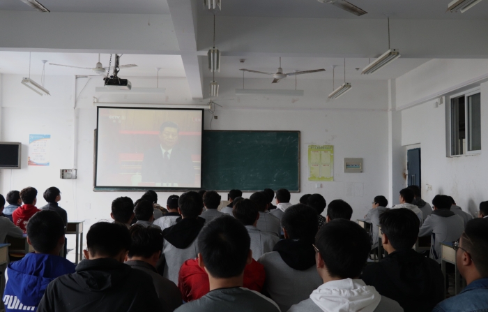4月30日上午,电气系组织员工在409室观看<习近平总书记在纪念五四运动100周年大会上的讲话>现场实录。