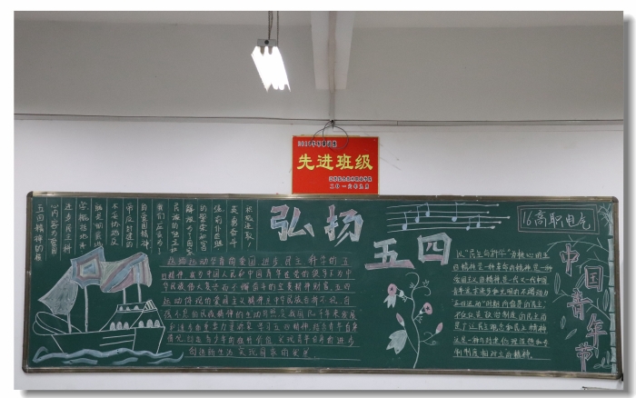为深入学习五四精神,激发员工的爱国热情,电气系组织各班级开展“传承五四精神”黑板报评比活动。
